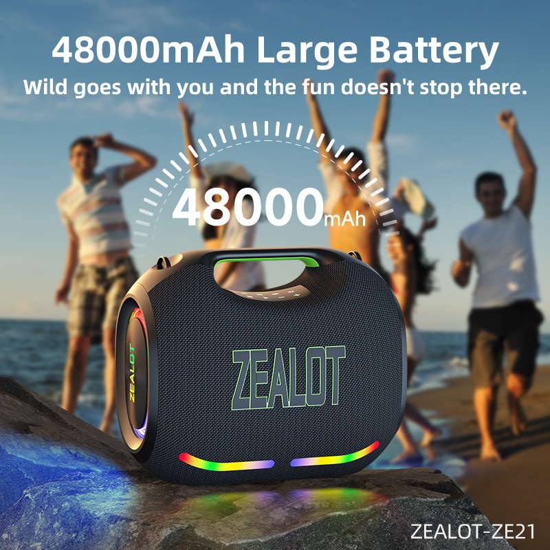Leve o ZEALOT ZE21 para qualquer lugar sem se preocupar com energia. Sua bateria de longa duração e design portátil garantem que a festa siga mesmo longe de tomadas.